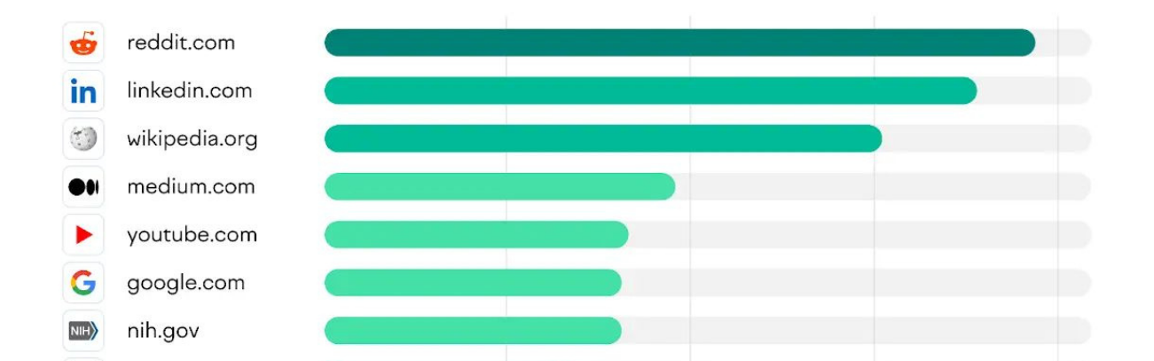 L’étude montre que LinkedIn et Reddit gagnent du terrain. Cependant, ils servent davantage à l’IA pour capter les tendances et les opinions que pour établir des faits. Par conséquent, maintenir une présence forte sur ces réseaux aide à la notoriété globale, mais ne remplace pas un site expert.
